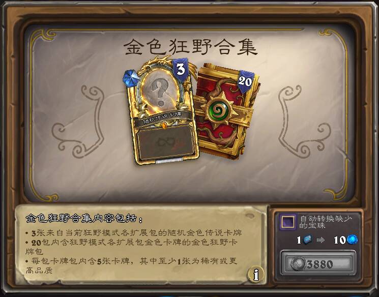 含20狂野金包和3张随机狂野金橙,国服售价388。