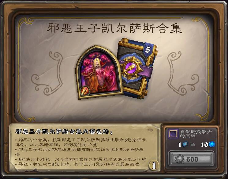 含构筑法师新皮肤“邪恶王子凯尔萨斯”和5法师包,国服售价60。