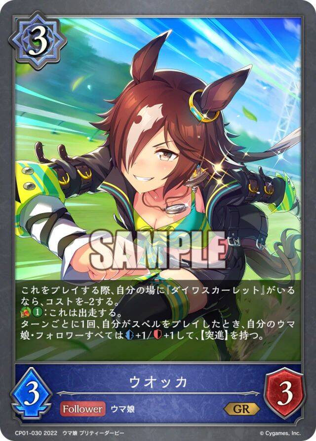 每回合限1次,每当自己使用法术时,使自己的所有赛马娘种族随从获得+1/+1和【突进】。