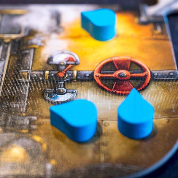 玩家版图其实就是一个锅炉,蒸汽的水滴标记通过在锅炉的冷区和热区移动来呈现蒸汽的增减。齿轮资源则分为小型齿轮和中型齿轮,另外还有 镀铬齿轮。