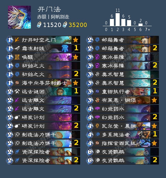来自赤银丨阿帆别走的一套开门法,他使用这套卡组在英雄乱斗模式中打出了12-2的战绩。