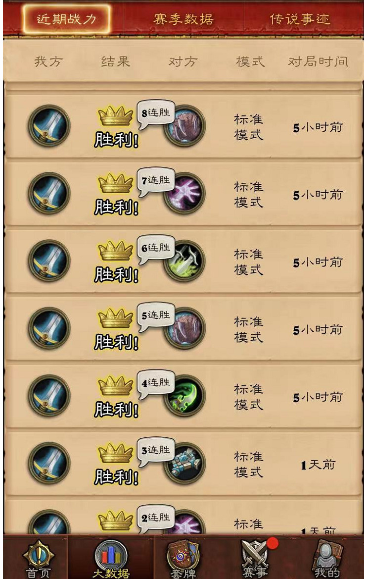 在上传及传说后的对战里各式的激怒战都试了一下,论战绩和体验最佳的还是之前日报里提到的龙王的那一套,同时也是目前hsreplay中使用次数最多的激怒战卡组构成。