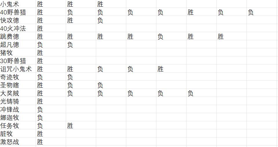 本家没啥好说的,跟圣骑士一样属于rip行列,遇到的次数寥寥无几,防战大爹,只能尽人事知天命,同行激怒战的话也是看来牌了。
