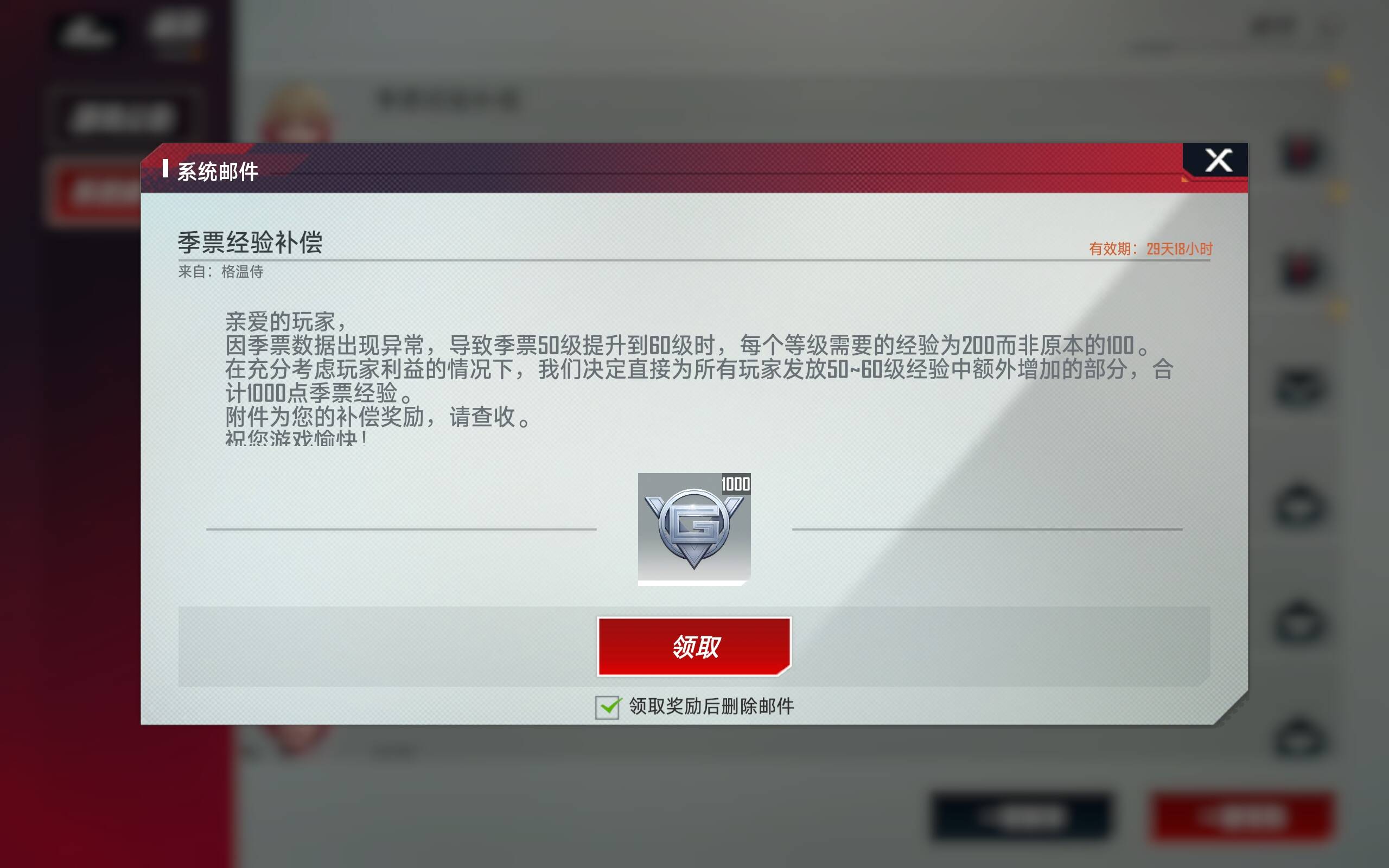 建议在已经50级的前提下,这个邮件先不要领, 等到下周赛季更新以后,再领取,可以直接升级10级提前获得赛季橙卡。
