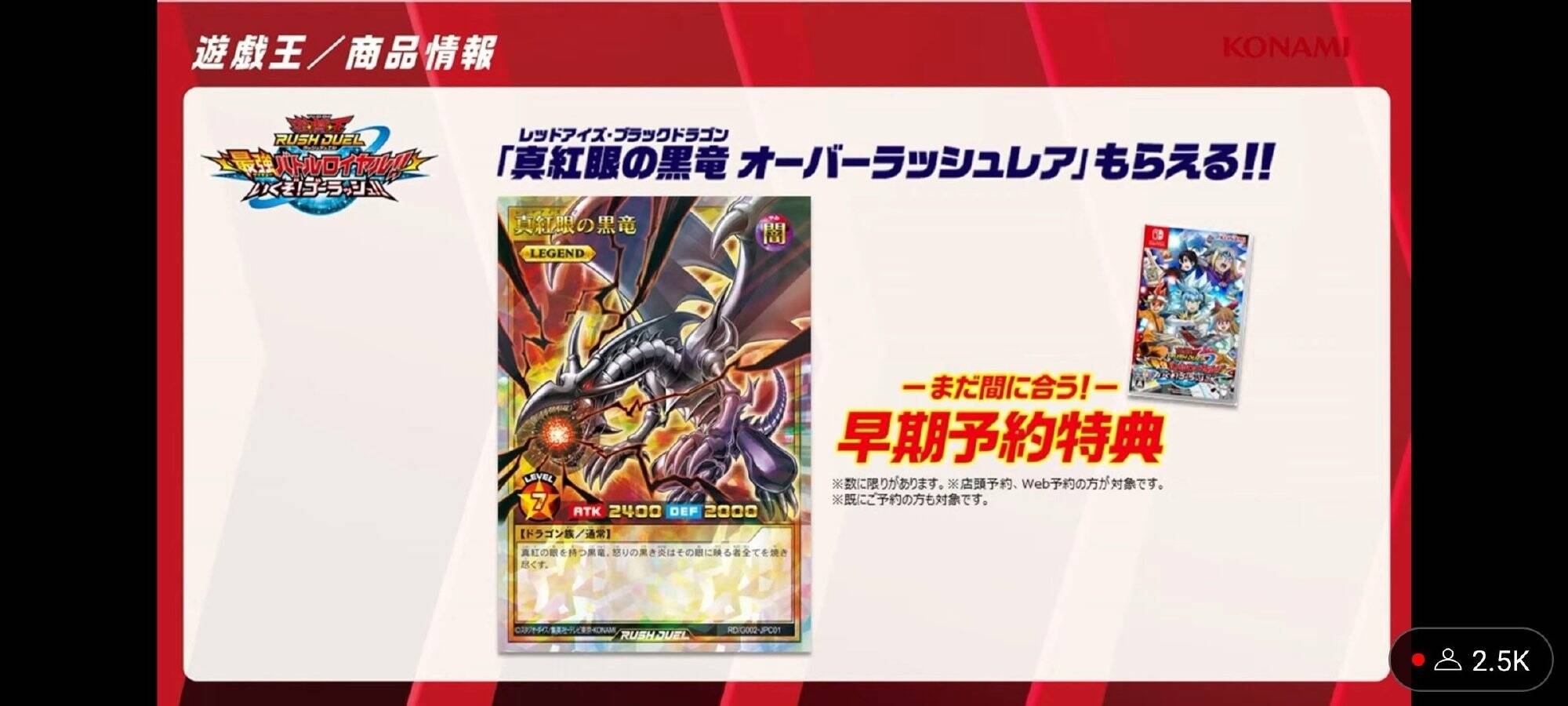 NS游戏早期预约特典:真红眼黑龙 ORR罕贵度