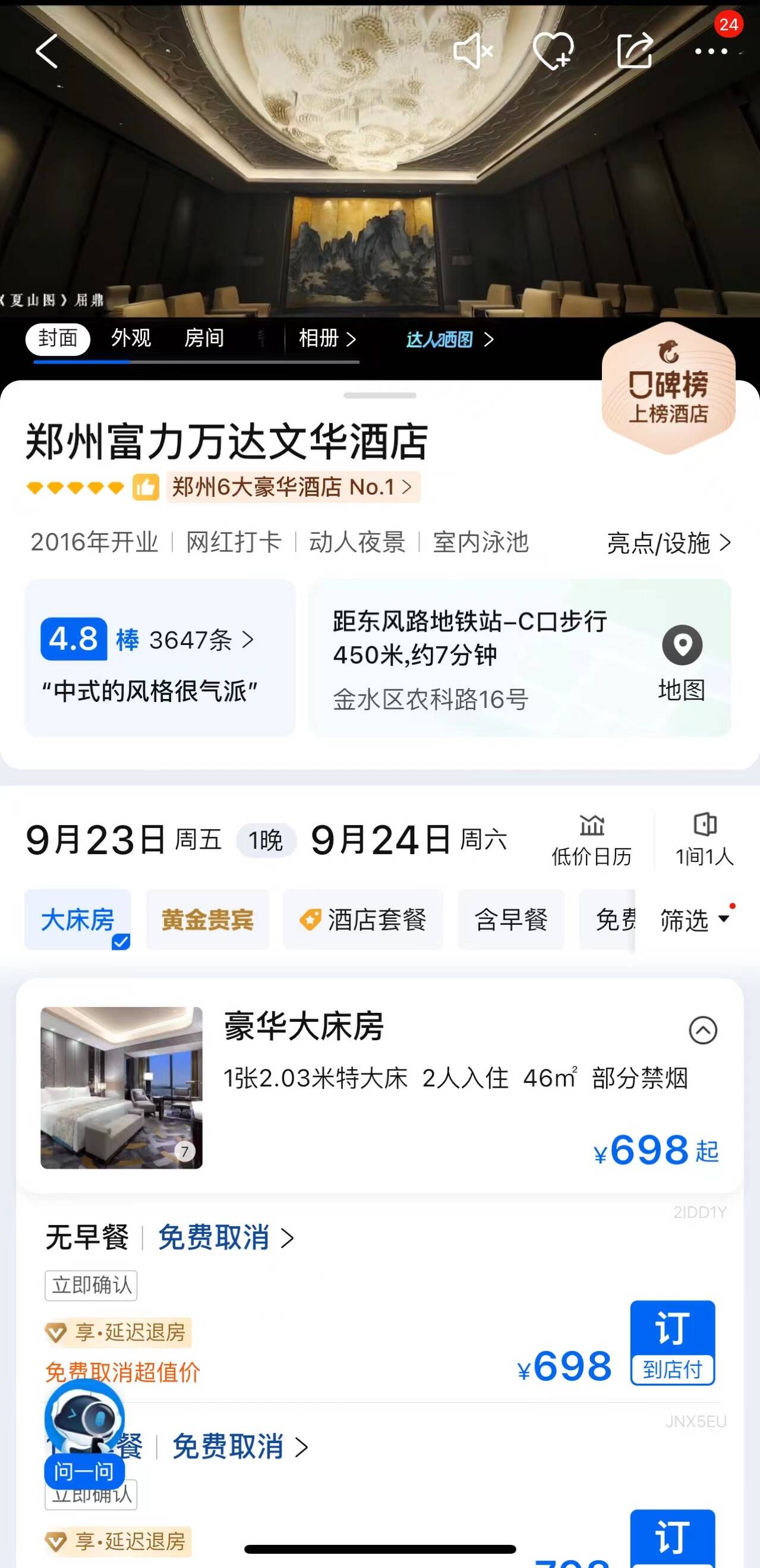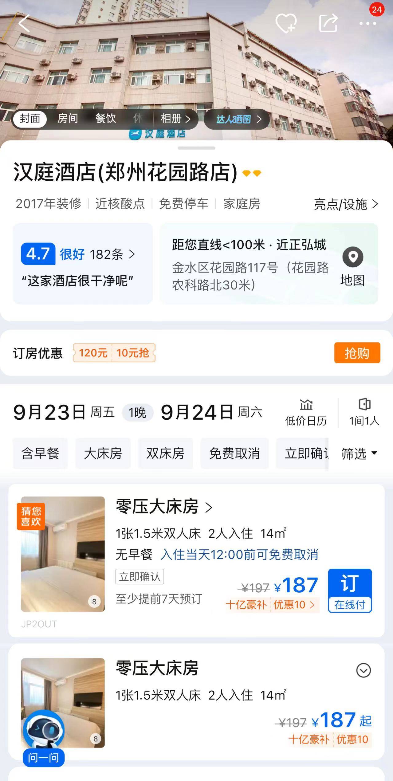 附近最近的三家酒店,汉庭、秋果和万达文华,携程价如下,步行都在五分钟范围内