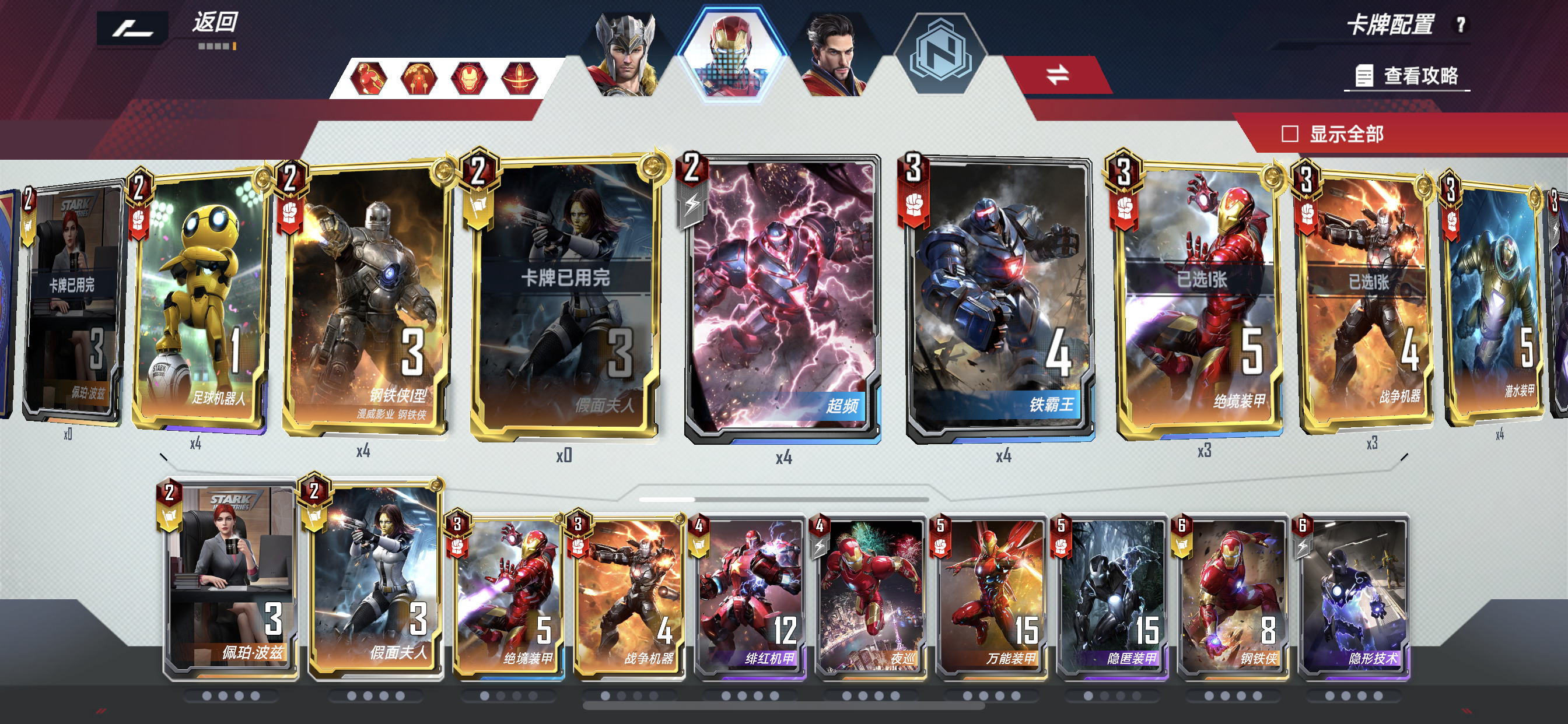 钢铁侠这里标准法师,没什么特别需要说的,血魔打法。现在天梯万能刺有复苏的迹象,可以夜巡处理。4费绯红机甲一般不会拿,除非6本小辣椒还是2星一下,可以考虑用绯红替换辣椒,不然不用买,辣椒经济更稳定。