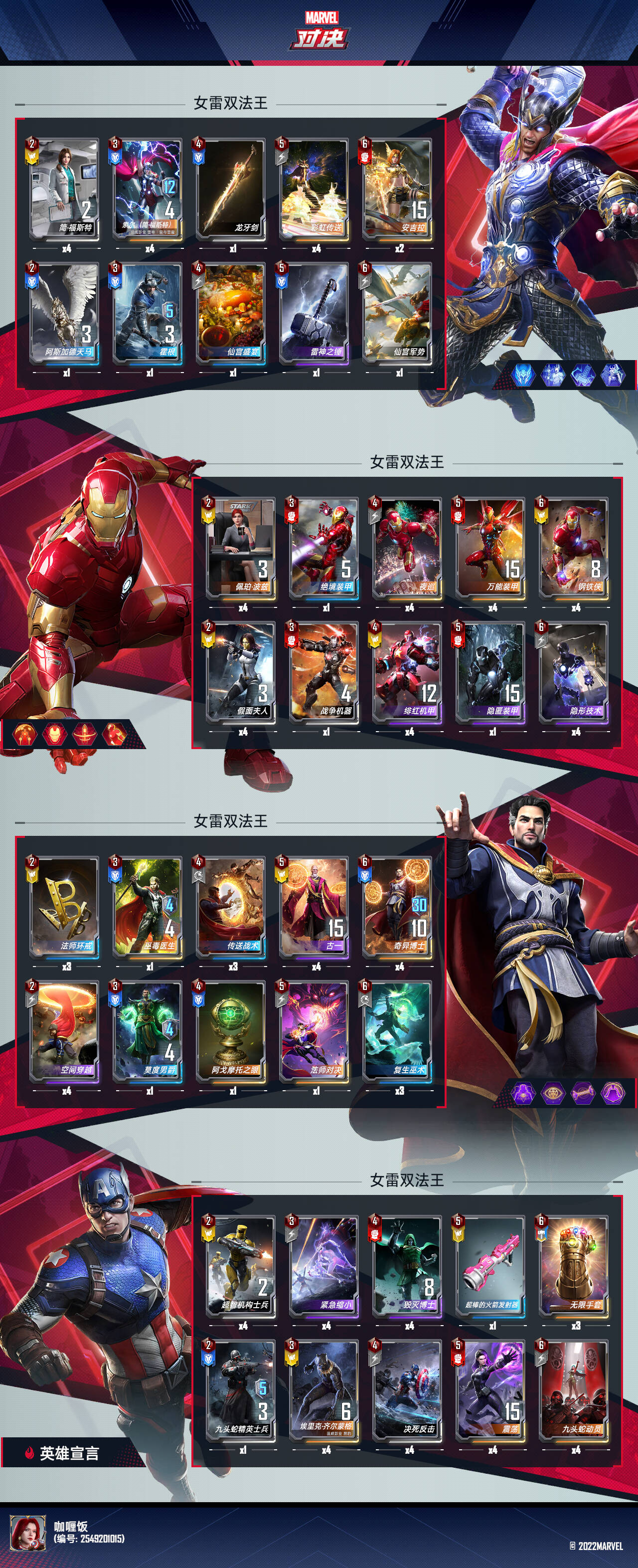 大家好,我是来自巴西妞的Shawnicole,游戏名:咖喱饭(ID:2549201015)。本人在昨晚新赛季的第一场比赛“杨山杯”观战的时候,遇见玩家“x”使用索尔搭配博士的套路,里面用上了自上线以来就一直坐冷板凳的女雷神,觉得这个套路很有意思。借鉴这位玩家的思路科研了一个通宵,加入了新版本的一张新卡:毁灭博士,面对部分卡组相当厉害,真就是毁天灭地的存在。废话不多说,这就赶紧把这套能打能玩能上分的博士卡组分享给大家。(其实是自己用这套打上王了,大家接着卷去吧)。