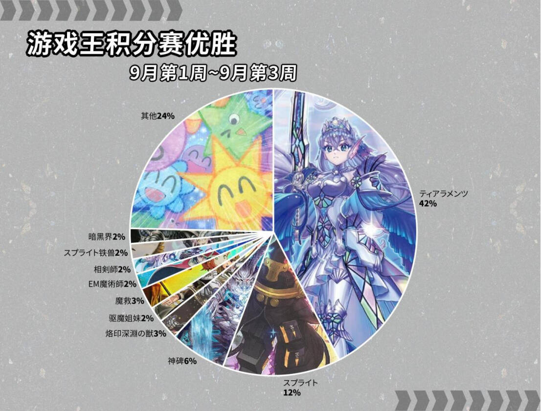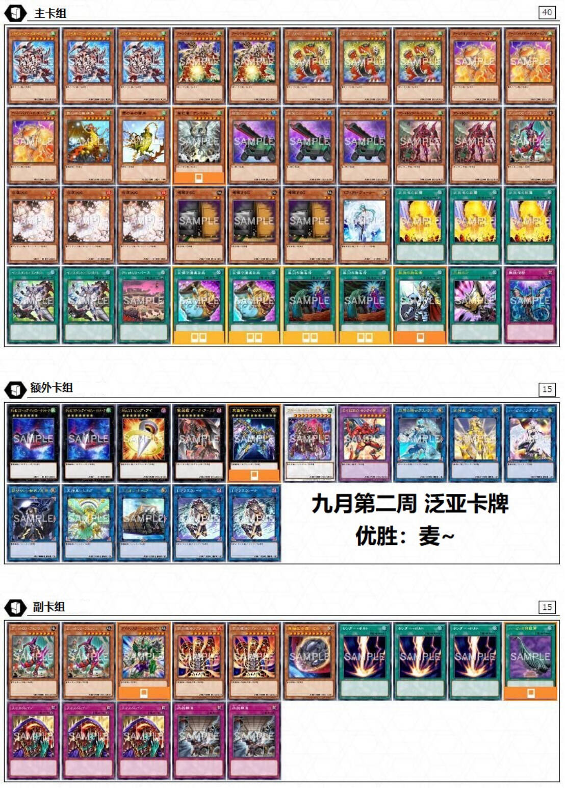 9月第一周至9月第三周,我们收集到232场各店铺举办的OCG环境积分赛事,计3480人参赛,共收集到232套冠军卡组,这些卡组的类型分布如下: