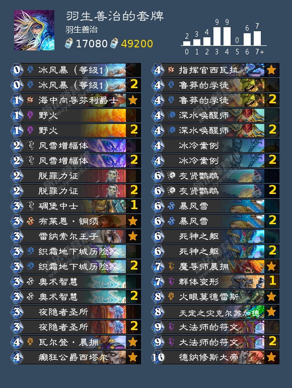 看了这次黄金赛的排表,没有pro带法师套牌,再看天梯和日报, 也都没有法师的身影,好像当前版本的法师并不受大伙青睐,我在标准全程使用这套法师,在迷你包更新以后从1w2排名打进前千,所以想分享一下这套牌给仍想用法师驰骋天梯的玩家,这是我第一次写攻略,如果有什么问题在评论区发出来,我会尽可能解答的。