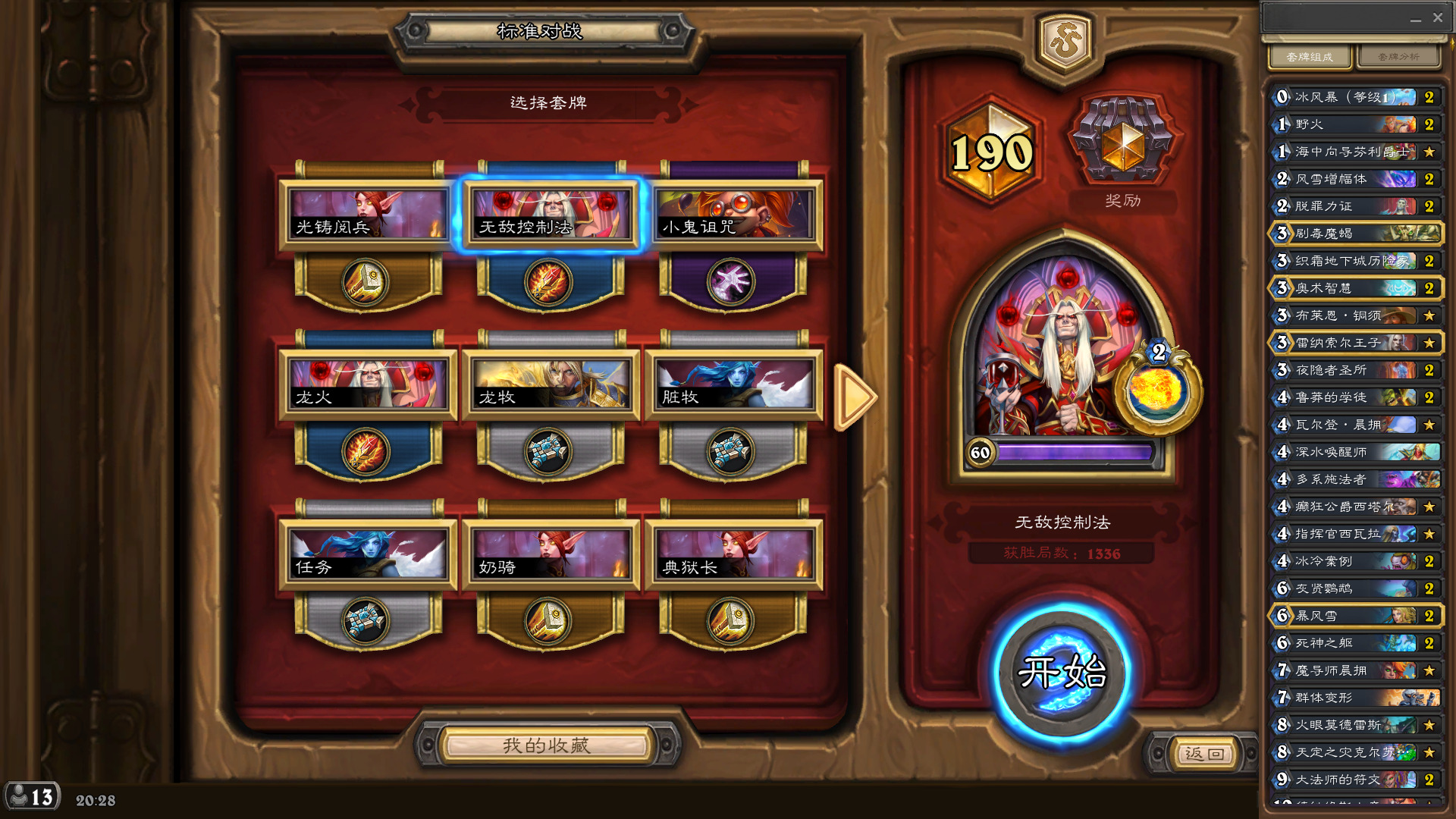 首先,我并不是卡组首创,这套牌是在补丁以前就有的控制法的思路,经过近十天的实战和修改成了这个样子。
