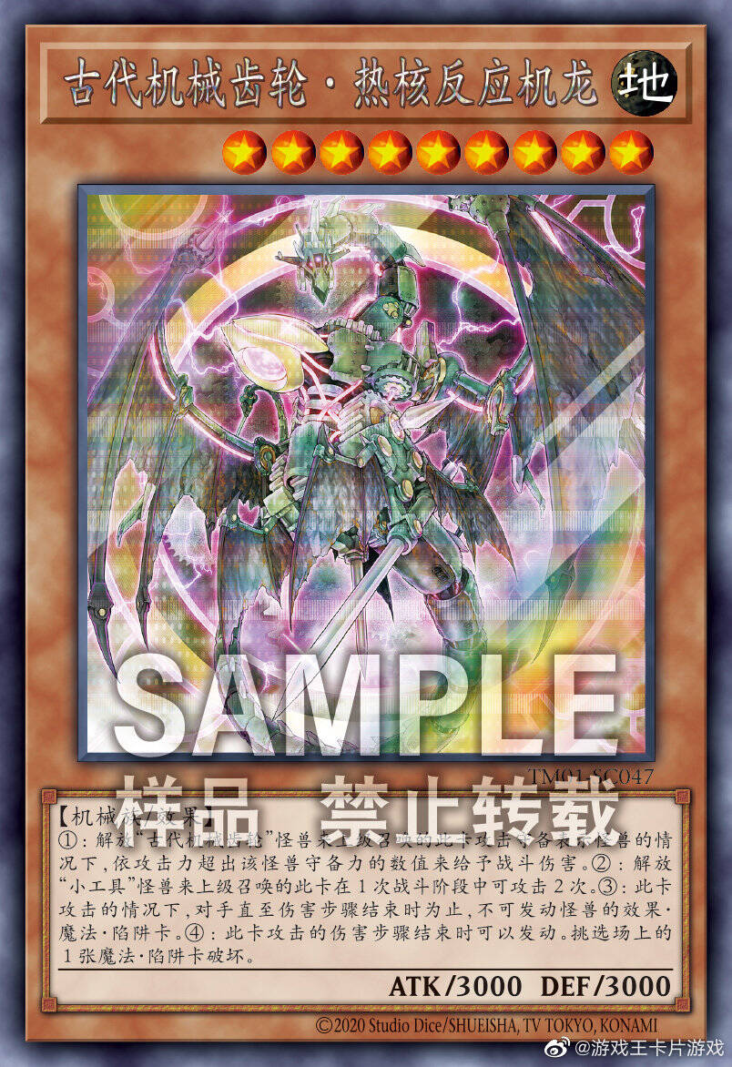 游戏王 决斗怪兽 主题包-无限机战-(简体中文版),10月29日发售!起动吧,寄宿于装甲与零件中的灵魂们,以无限的力量前进吧!本次为大家带来的预览卡片为主题包-无限机战- 收录卡片,『古代机械齿轮・热核反应机龙』!