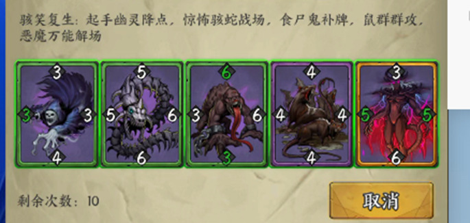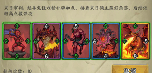 这款游戏的卡牌分为秩序,神秘,狂野,恐惧,炼狱5个特殊势力和1个共用的中立势力,可以简单理解为职业卡和中立卡。每个势力都有自己独特取胜手段,每个势力都有很多套路可玩。在新手时期,有免费的试用卡组可以玩,我现在的段位已经找不到试用卡组, 所以网上找的图给大家看一下。这也是熟悉每个势力特色的好机会,甚至官方都贴心的把套牌玩法写上去了,顺着官方的思路走,再仔细研究一下套牌中每个卡牌的技能,很快,我们就掌握了几种套路玩法,开启了新世界的大门。既然说到这了,我也贴心的说一下,新手挑战活动每天都需要各个势力卡组玩3次并且每天都重置,用试用卡组做任务就是不错的选择。