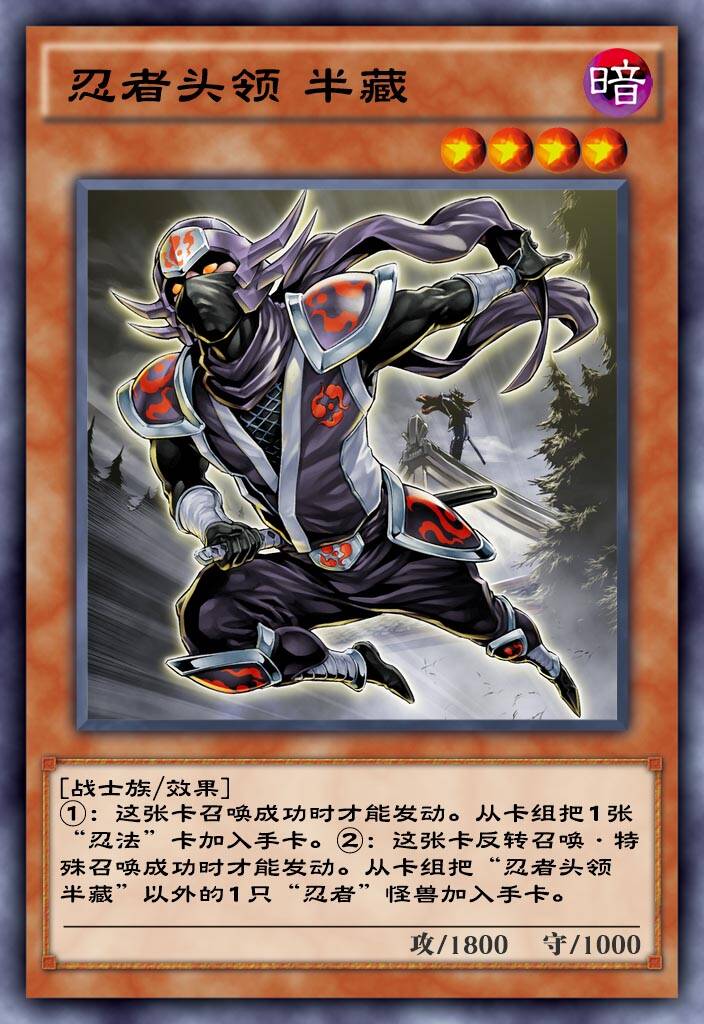 黄金包复刻卡,忍者本家的核心下级,1效果这张卡唤成功时才能发动。从卡组把1张「忍法」卡加入手卡。2效果这张卡反转召唤·特殊召唤成功时才能发动。从卡组把「忍者头领 半藏」以外的1只「忍者」怪兽加入手卡。想要玩忍者的玩家强烈建议将这张卡必须满3。