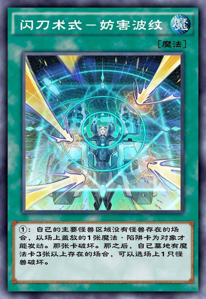 自己的主要怪兽区域没有怪兽存在的场合,以场上盖放的1张魔法·陷阱卡为对象才能发动。那张卡破坏。那之后,自己墓地有魔法卡3张以上存在的场合,可以选场上1只怪兽破坏。 决斗链接目前没有出其他闪刀姬本家卡,这张卡只能作为风来使用,如果只是需要风的话,可以选择旋风或者银河气旋替代,推荐1-2即可.