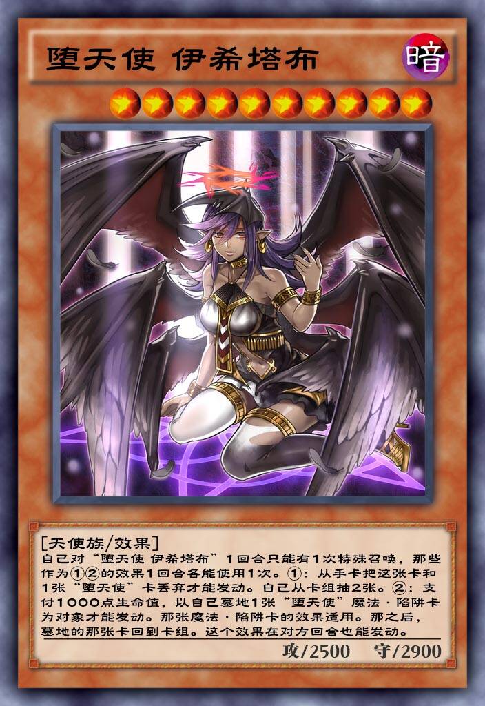 从手卡把这张卡和1张「堕天使」卡丢弃才能发动。自己从卡组抽2张。支付1000基本分,以自己墓地1张「堕天使」魔法·陷阱卡为对象才能发动。那张魔法·陷阱卡的效果适用。那之后,墓地的那张卡回到卡组。这个效果在对方回合也能发动。 人称妹抽,是堕天使本家核心的赚卡点,需要满3,配合戒坛可以进行苏生,复制墓地魔陷再开一次效果.