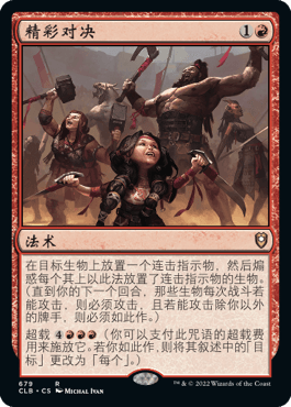 我将精彩对决添加到牌表中,因为它确实给了艾尔莎一个持续的连击指示物。作为2点法力值,我们给艾尔莎连击,而7点法力值,我们给所有生物连击,迫使我们的对手去踢其他对手!需要注意的一点是,如果我们不能在施放精彩对决后赢得回合,我们将面临一个充满互相伤害的世界。