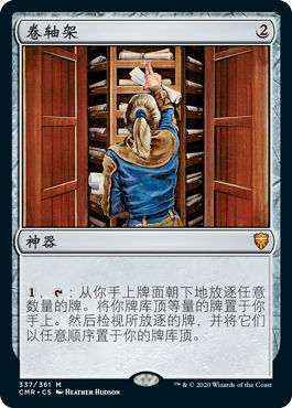再来看看无限轮回艾尔莎,我们想要的是能够操纵牌库顶的卡,这样我们就可以用艾尔莎的能力来施放它们。卷轴架在指挥官传奇重印之后,价格保持在20刀以下,而且能确保我们知道牌库顶最上面是什么。我们的套牌里充满了可以让我们影响牌库顶的效果,简单的从杰斯的圣所的占卜到龙怒通念师的刺探。
