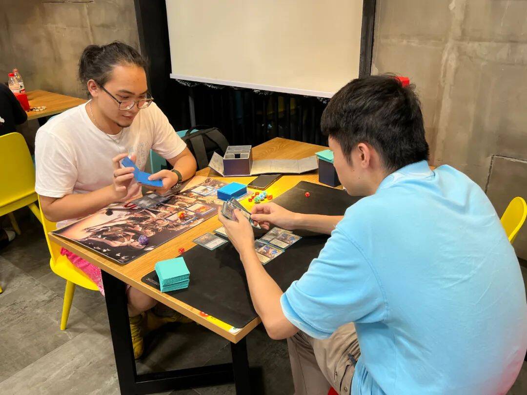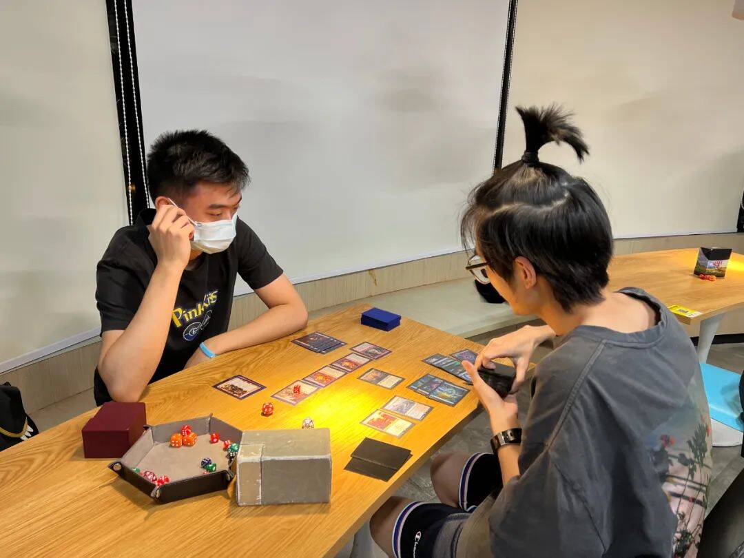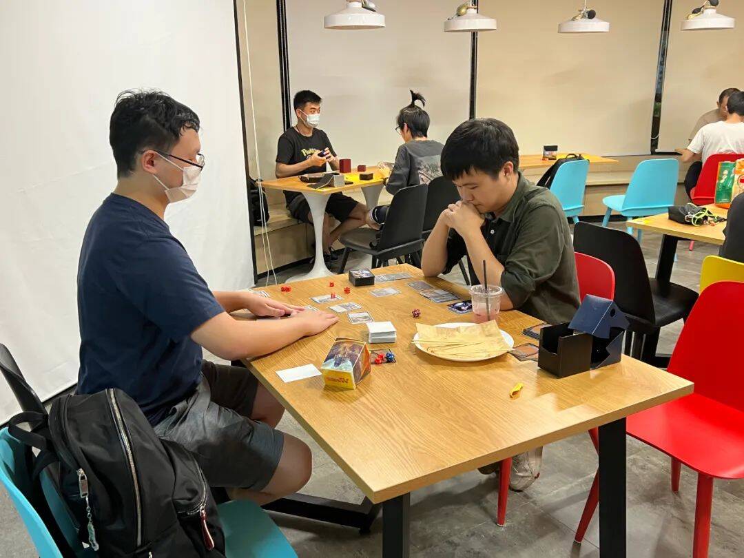 牌手们都有序的保持安全距离进行对局.