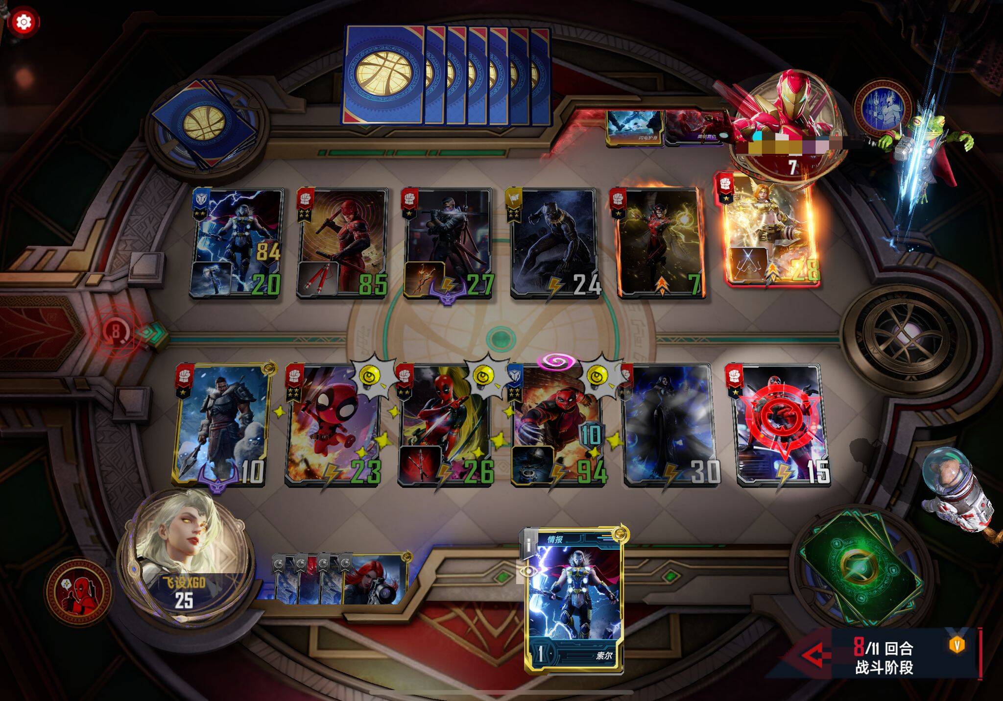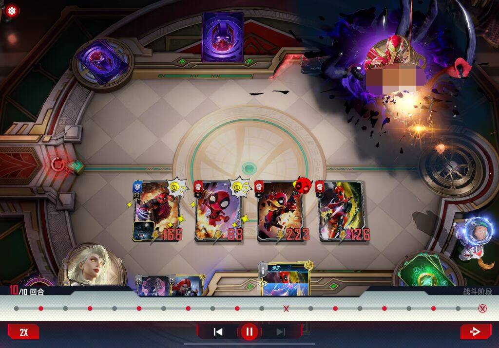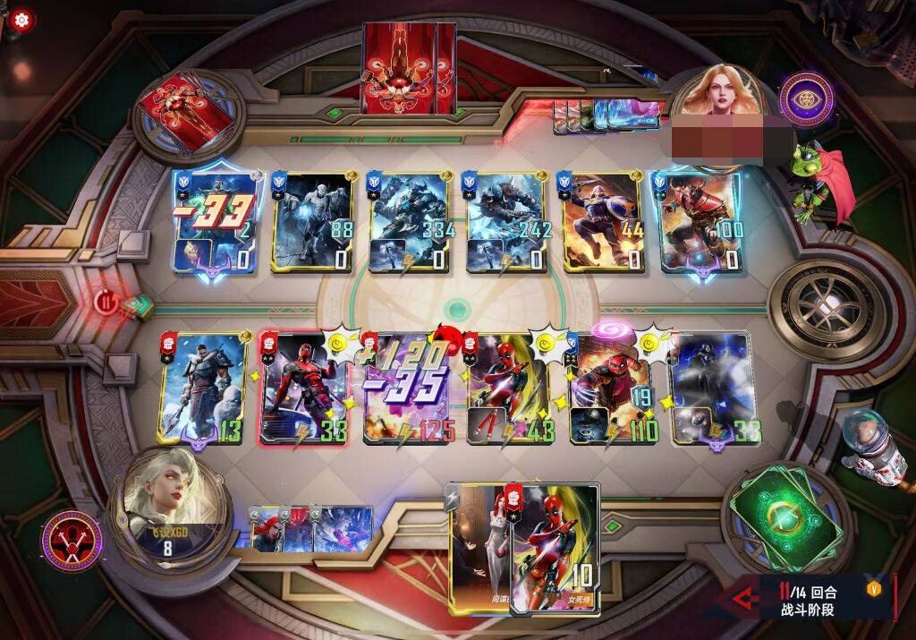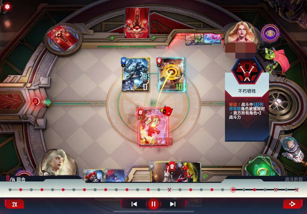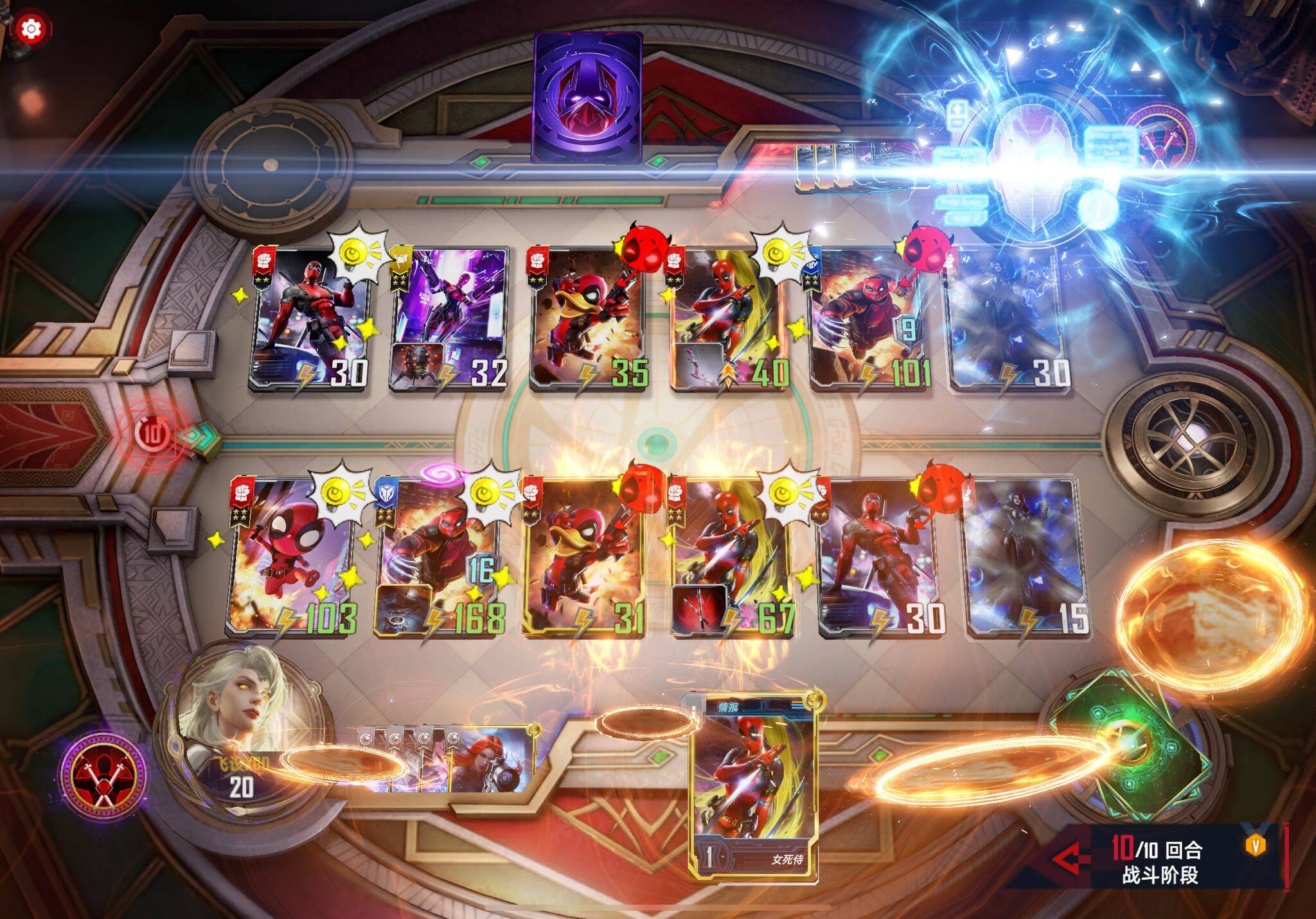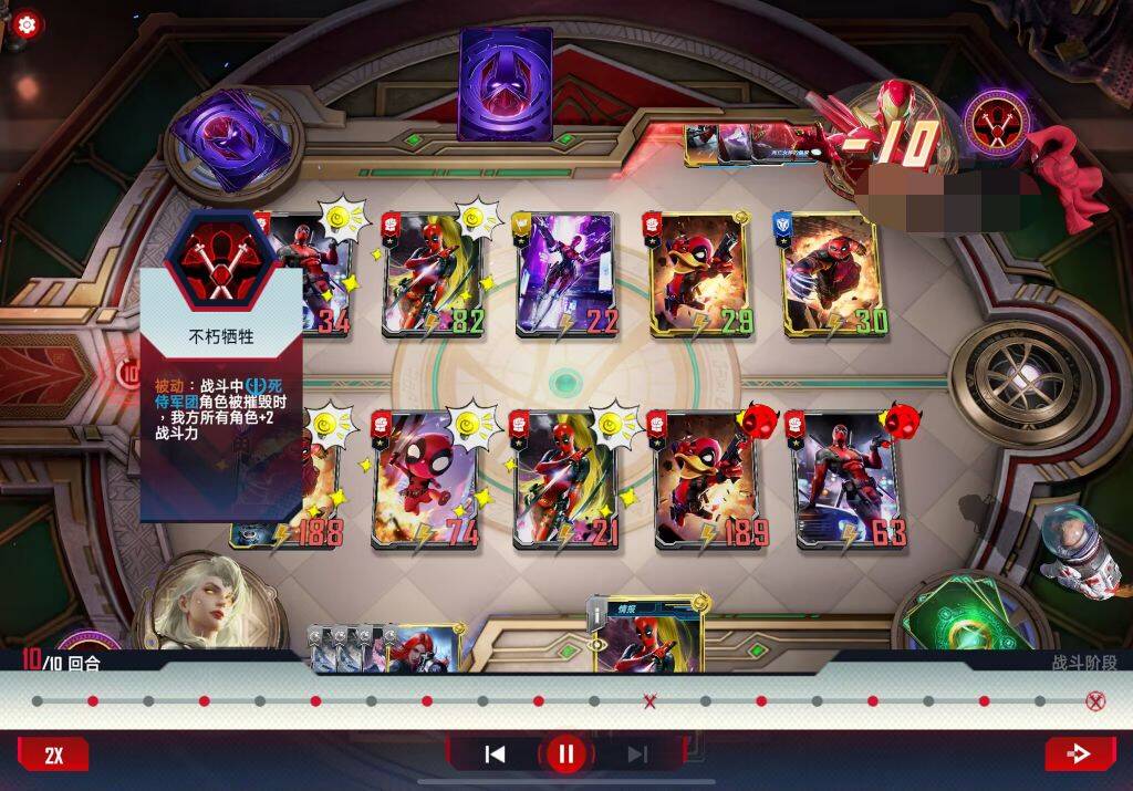 遇到大身材万能,援军,夜魔侠等带狙或者耗死。有万能或者安吉拉的情况下我一般会把死亡女神位置和死侍换一下避免开局直接被刺杀。