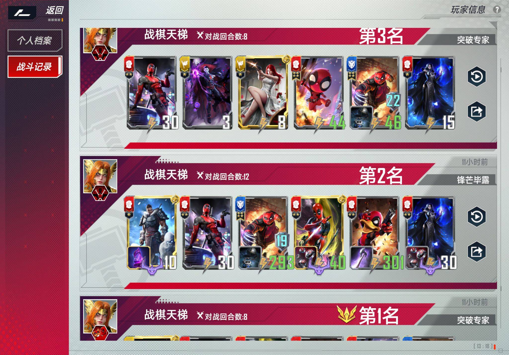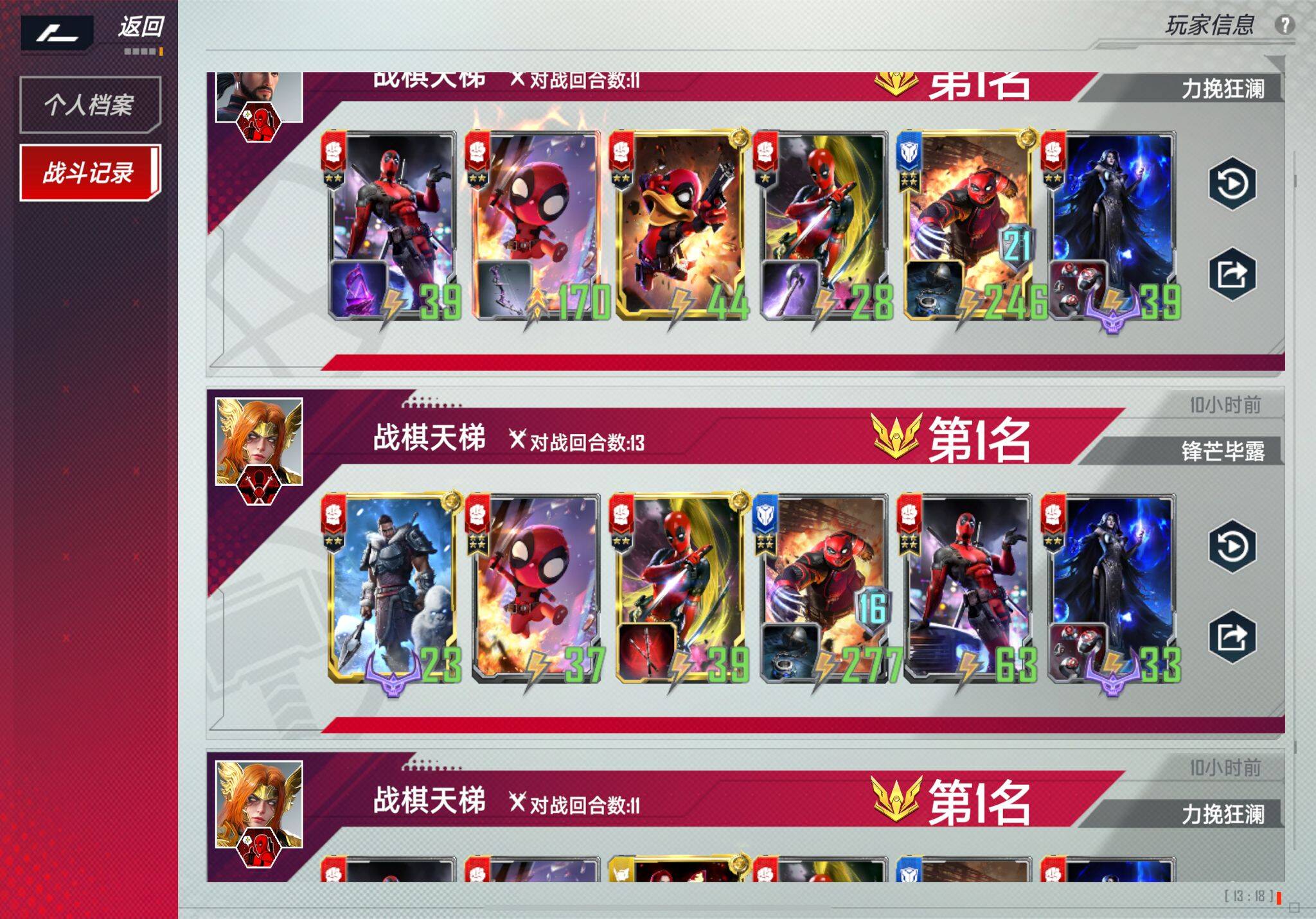 以上每种情况都有获胜对局,实在懒得找和贴图了哈哈,简单找了三个给大家看看。其他情况还有问题可以评论区打出来,我会一一回复。