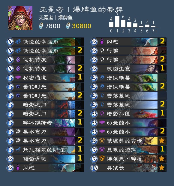 提前利用碎冰蹒跚者和安卡将显眼的诱饵减至0费,挂上雪落墓地后打出显眼的诱饵自动死亡拉出典狱长和碎盾,再利用幻觉药水回手,拍下一个1费的典狱长,一个1费的碎盾即可实现无敌,如果手上有托瓦格尔的阴谋可以洗碎盾进牌库防止被解。仅仅是个娱乐卡组,被解了就下一把,勿喷,楼主只是提供个思路,期待有更好的构筑,被解了就下一把。