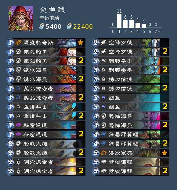剑鱼贼优开花园骑士,花园骑容易在中后期发力前被抢死,如果是剑鱼贼内战,刺豚和武器来的时机好的贼会赢。