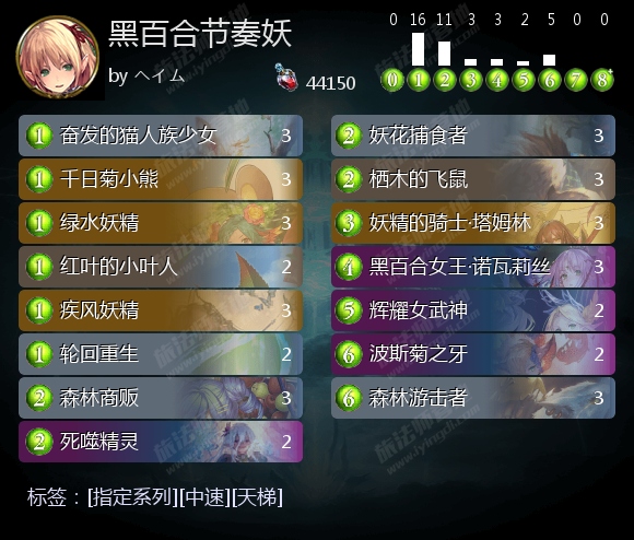 除了站场抢血,节奏妖还拥有许多疾驰随从,可以打出空场伤害,或配合场攻加快取胜速度。其中,妖花捕食者能回手疾风、红叶的小叶人,反复利用后者入场曲;辉耀女武神能在中期打出高爆发,并附带返场效果;而妖精的骑士·塔姆林则能在堆够已离场精灵随从数后高效解场、抢血,打出过墙斩杀。