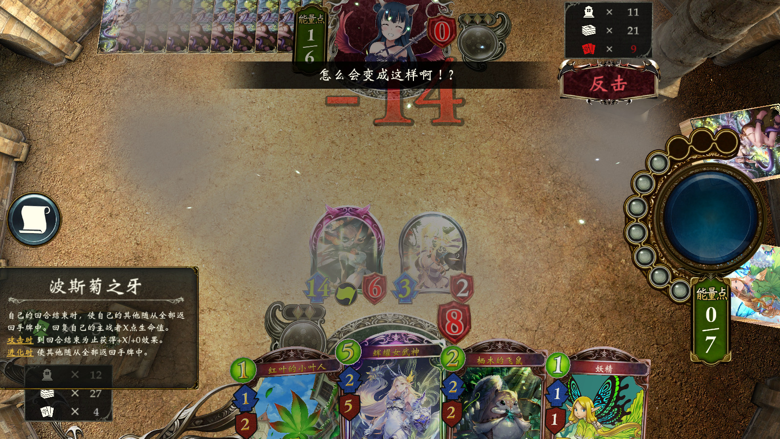 波斯菊之牙能在第6回合登场,并在下回合进化,配合1费随从、妖花捕食者和1费回手牌打出最高满血斩杀。在面对人偶仇、造物仇、守护教、进化协作皇等擅长返场或护脸的对手时,抢血路线难以走通的话,这是靠谱的制胜方式。