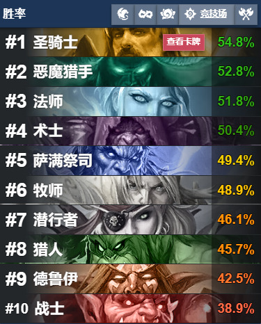 我们先来看下更新后,稳定下来的各职业胜率情况: