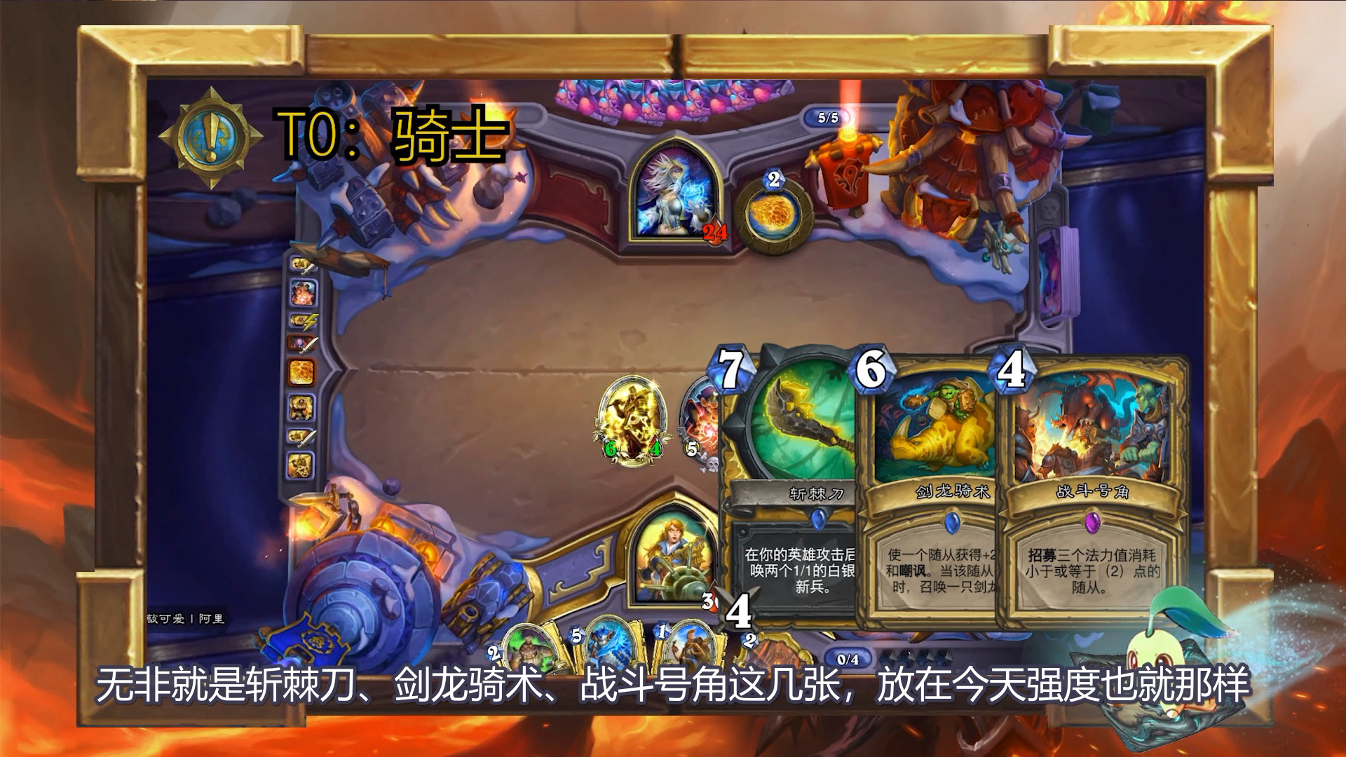为什圣骑士这次能稳坐T0宝座,很多人都不理解,因为骑士这次轮换回来的卡并没有太强——无非就是斩棘刀、剑龙骑术、战斗号角这几张,放在今天强度也就那样;