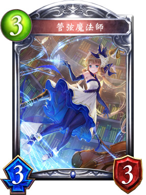 管弦并非新牌,但却极少出现在过去的增幅法构筑中,是因为当时的过牌能力不足以支持她。而在新卡包实装后,万能的奇迹·梅露缇娜和牌卡术师·梦璃的加入,大幅提升了增幅法的过牌能力,管弦便显得如鱼得水了。其中,梅露不仅很容易以仅仅1费提供2张手牌,还可以通过入场曲或进化时能力解场,并补充新的梅露进手,在后续回合继续过牌、解场。梅露还有机会回复进化点,为管弦或自身提供额外进化机会。