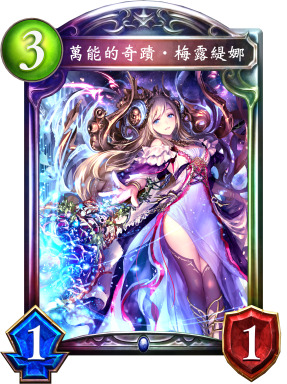 万能的奇迹·梅露缇娜能高效过牌,并通过入场曲和进化解场,还可以利用消失效果针对造物仇等流行思路。在刷够10增幅后,梅露还能提供额外进化机会。此外,先手第3~4回合直接使用增幅4以下梅露也不亏。