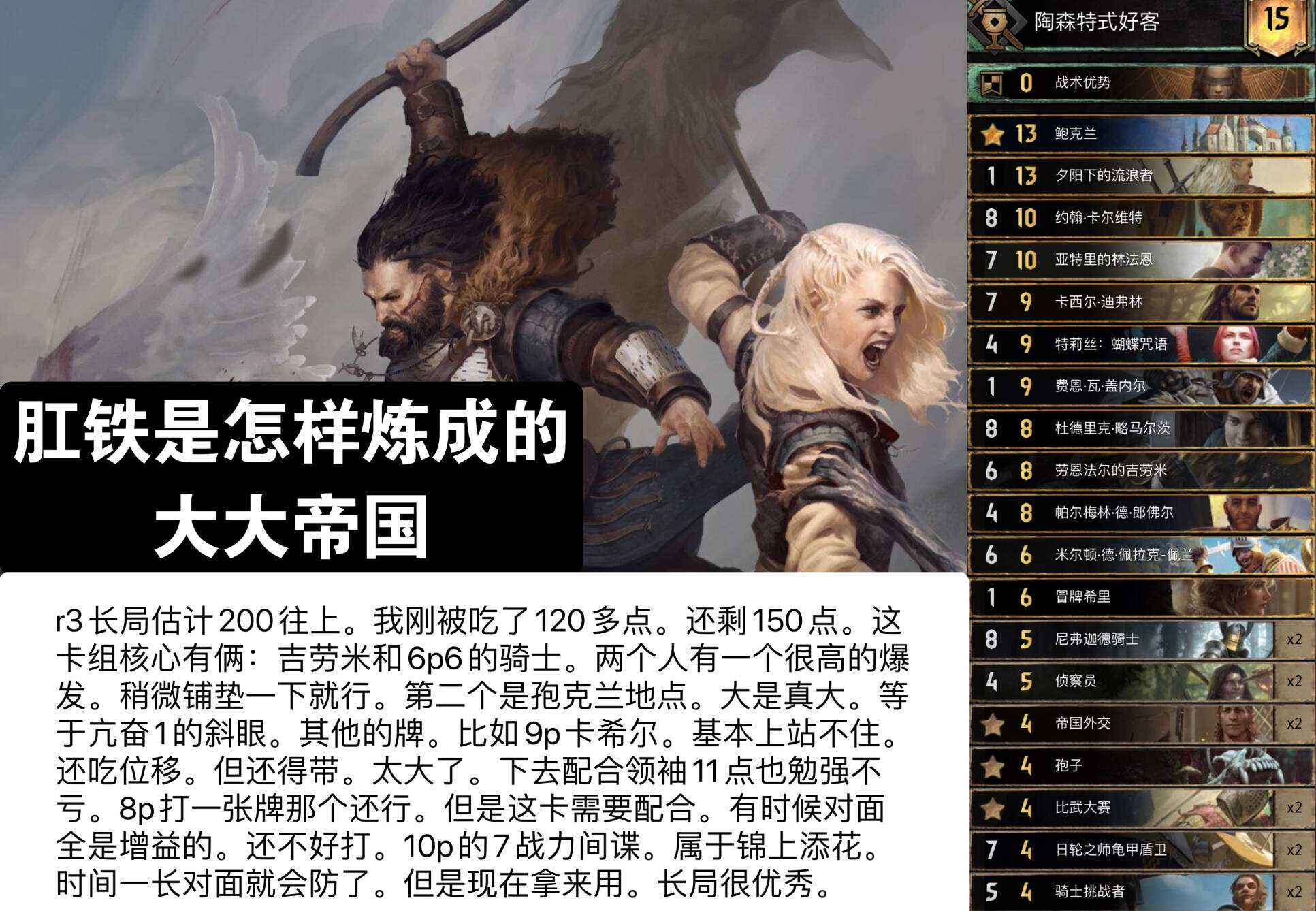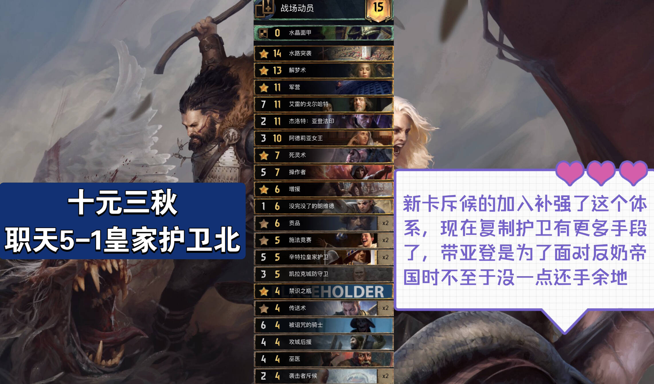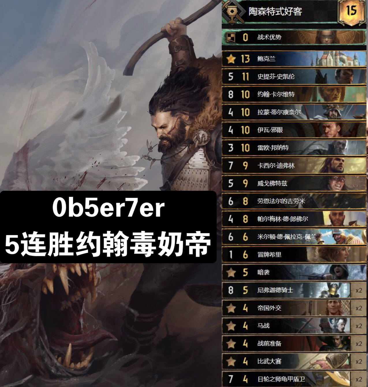 卡组链接:https://www.playgwent.com/zh-cn/decks/61691cf64995c44b9ceeb3570e7d84d1