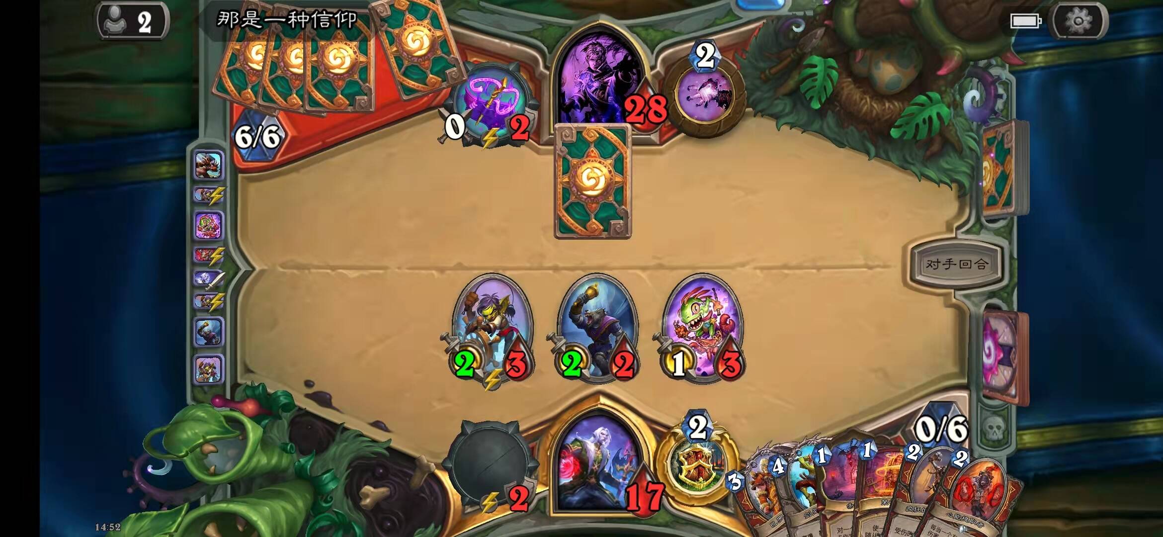 对战奥秘法,2费尼鲁巴,5费血誓复制双尼鲁巴