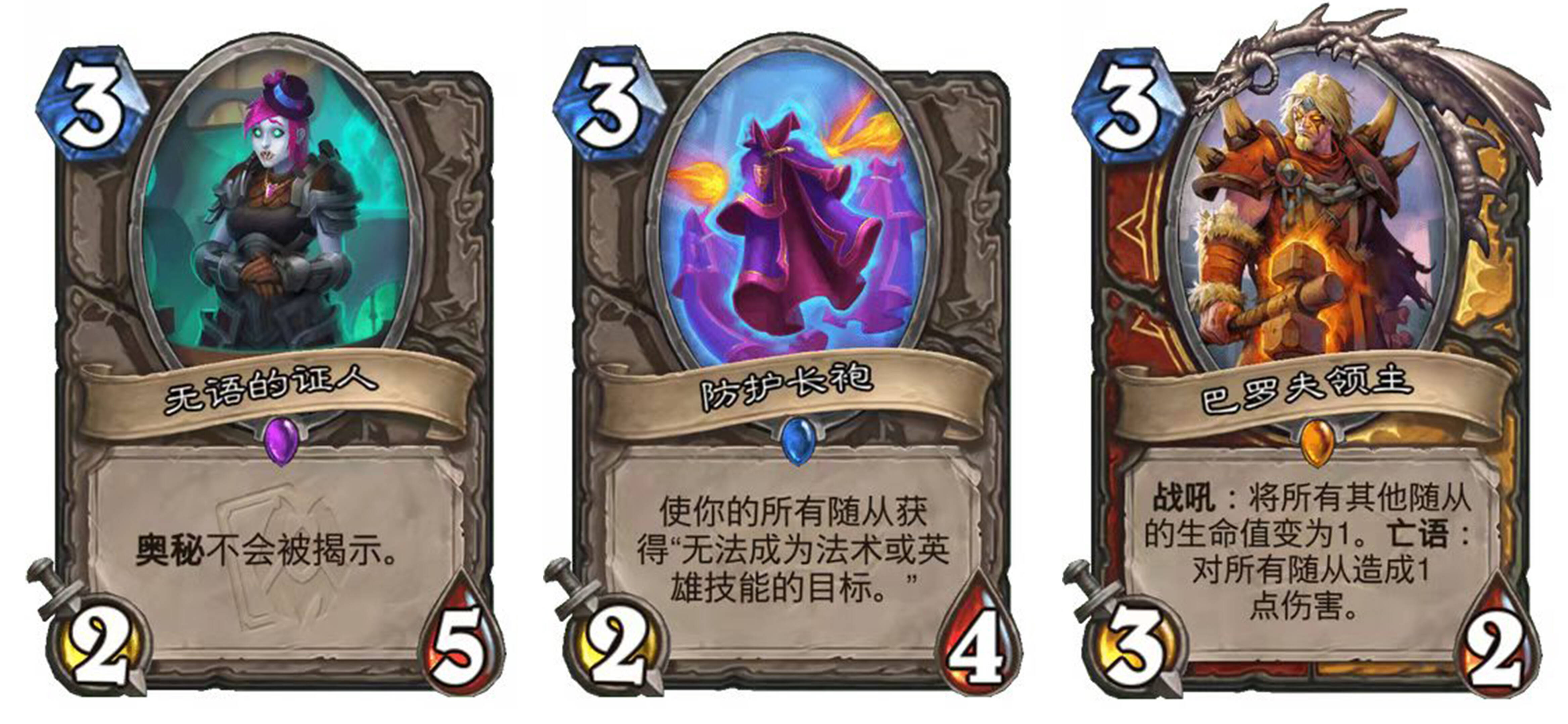 ·巴罗夫领主:相较于激怒战,其实更适合防战携带。顺风局拍不下去,逆风局缺少艇长清场,本身2血且没有突袭属性很难触发全场打1亡语。遇到快攻较多可以考虑携带。