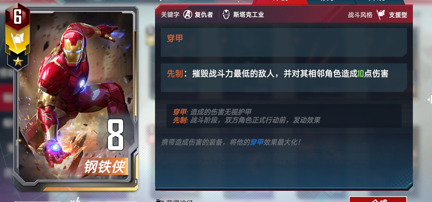 钢铁侠可以令对方减员,增加对面角色减少速度,提高将对面全部变为共生体并一一消灭的效率,同时还能针对莫度法师,最佳选择是场上站两个。