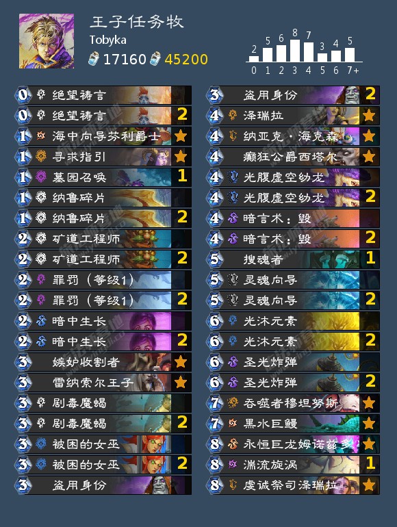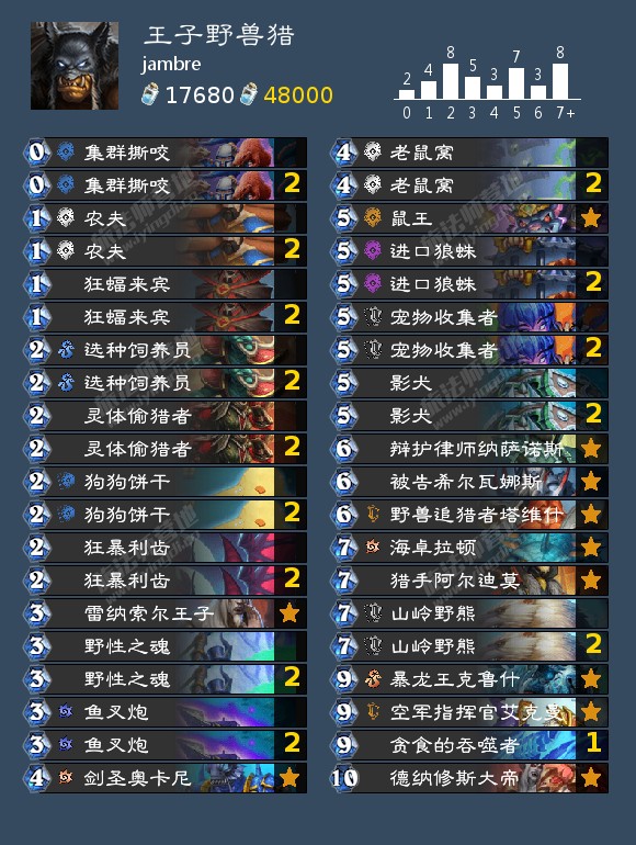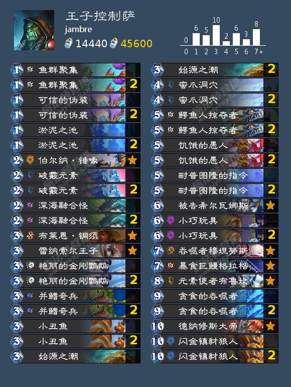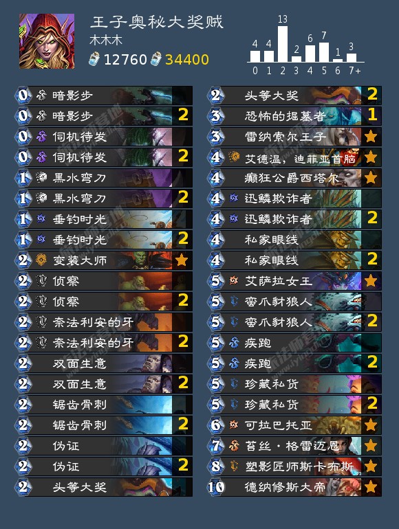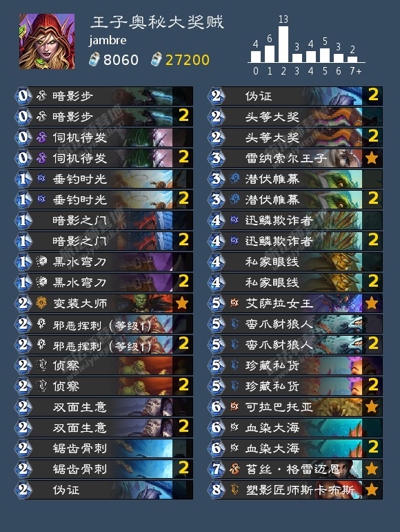 其他值得一提的小有规模的卡组还有法国众的王子咒瓶术,和一些带小巧玩具等变形组件的王子控制萨,还有一种jambre、木木木等人带的王子+奥秘+大奖贼的新组合。另外,虽然热修在赛前已经上线,但私法程序+哨所的德鲁伊也还是有人带。