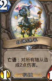最后给大家说一句老生常谈:人永远跟着环境走,如果大家觉得快攻多的话完全可以把自己觉得没用的牌换成”亡灵药剂师“和”自爆绵羊“