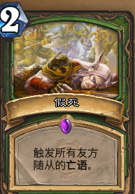 ” 装死“这张牌主要配合”科尔拉克“使用直接出两个,也可以配合其他亡语怪,缺点是卡手