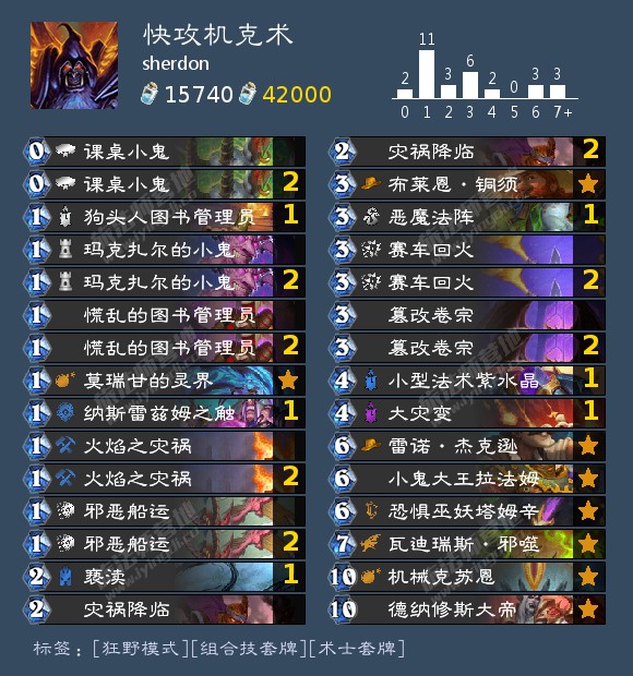 卡组奶稍微多点就是为了应对环境,毕竟最近奥秘法有点小多(不能等到文章发出来环境就变了吧)。橙卡没有的话,多带点过牌和回血就好了,除了铜须大帝机克是必要的以外。当然拉法姆最好有,灵界换其他过牌也影响不大。3费招小鬼其实也可以满编。