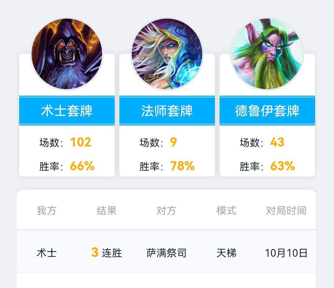 上个月由于晨拥古夫超凡都被削,宇宙法宇宙德都没得玩了直接狂野摆烂了,这个月只有9星开打,钻石10开始86把65%胜率上传,排名8k。(期间试了几把奥秘法是为了找奥秘法的弱点,现在摆出来的卡组奶稍微多点就是为了应对环境)