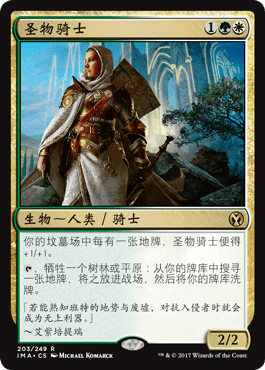 垦殖妖精和圣物骑士也允许我们将地牌置入我们的坟墓场,并用主将将其从自己的坟墓场中拉出。与前面提到的法术咒语不同的是,这些生物咒语允许我们持续性的一次又一次触发主将技能。