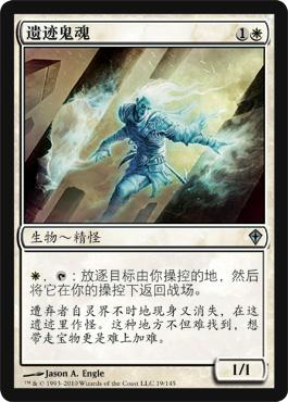 引路羊蹄人通常最适合在游戏前期使我们找到一个非沙漠地,同时将沙漠置入我们的坟墓场。遗迹鬼魂可以让我们云移我们的沙漠,所以即使我们没有抓到任何沙漠,我们也可以继续触发指挥官技能。