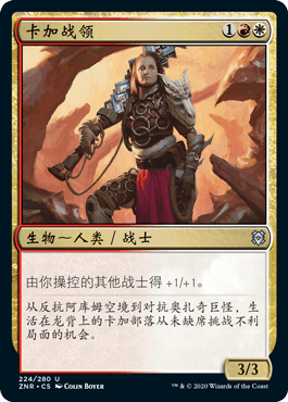 哈泽忠创造出了一个独特的衍生物,我们可以以其他衍生物通常无法利用的方式利用它。这些衍生物都是纳雅三色,这意味着他们将从新阿拉若骑士那里得到+3/+3的增益。而且他们不仅是三色,还是战士。冷眼罗维莎和卡加战领都会让那些战士变得更可怕。