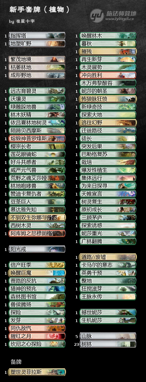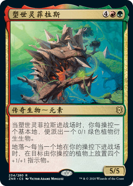 相比第一期复杂的蓝黑灵俑,今天提供的新手套牌是红绿色组的植物主题构筑就要简单很多,主将是来自赞迪卡的塑世灵菲拉斯。
