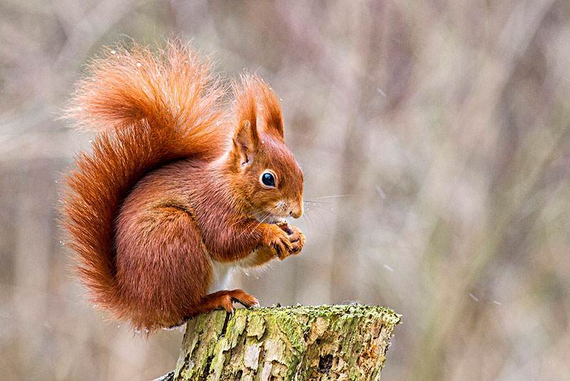 欧亚红松鼠是松鼠族下的一个物种,属于一种居于树上的杂食性啮齿动物,在欧亚大陆等地均十分常见。欧亚红松鼠的标准头体长约为19至23cm,尾巴长15至20cm,体重为250至340g,雄性与雌性体重相约,并不存在两性异形的情况。一般认为松鼠长长的尾巴能够帮肋它们平衡,特别是在树与树之间跳跃及枝干上快跑的时候。睡眠的时候卷覆身体也起了保温的作用。随时间增长及地点的不同,它们身上的皮毛也会呈现不同颜色,由黑到棕甚至红色。