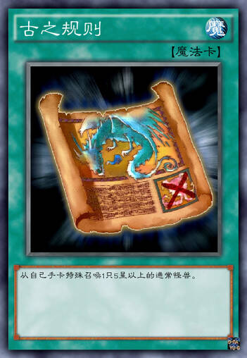 【古之规则】的卡名暗指的是游戏王最早的规则:不需要祭品就可以召唤上级怪兽。