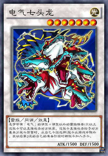TCG把这只怪兽的名字改成了hydra——九头海蛇许德拉。这个七头改成九头……我总感觉OCG哪天会背刺出个电气九头蛇。