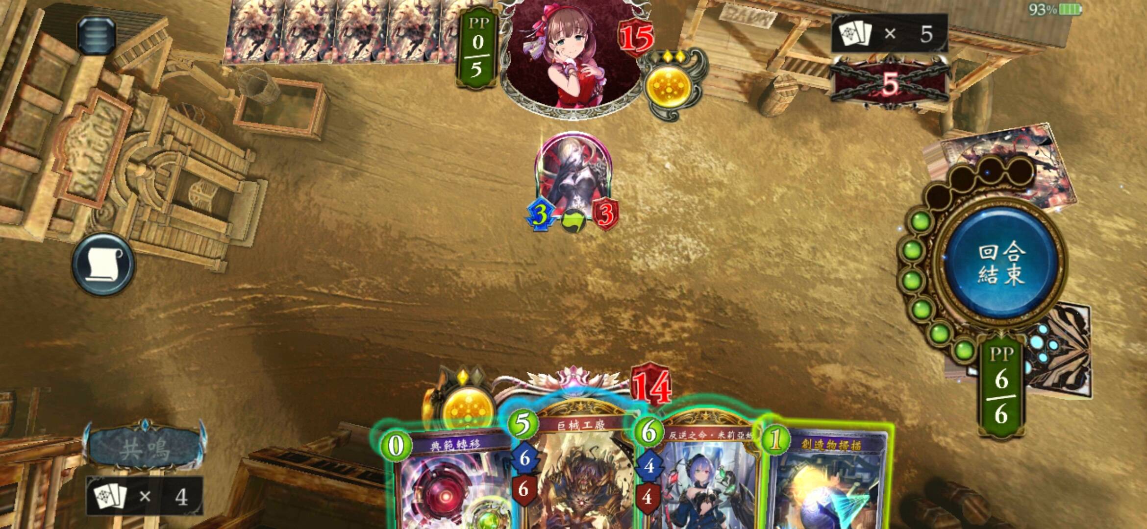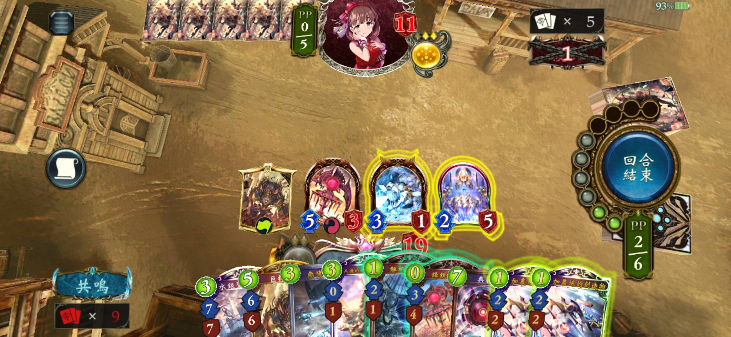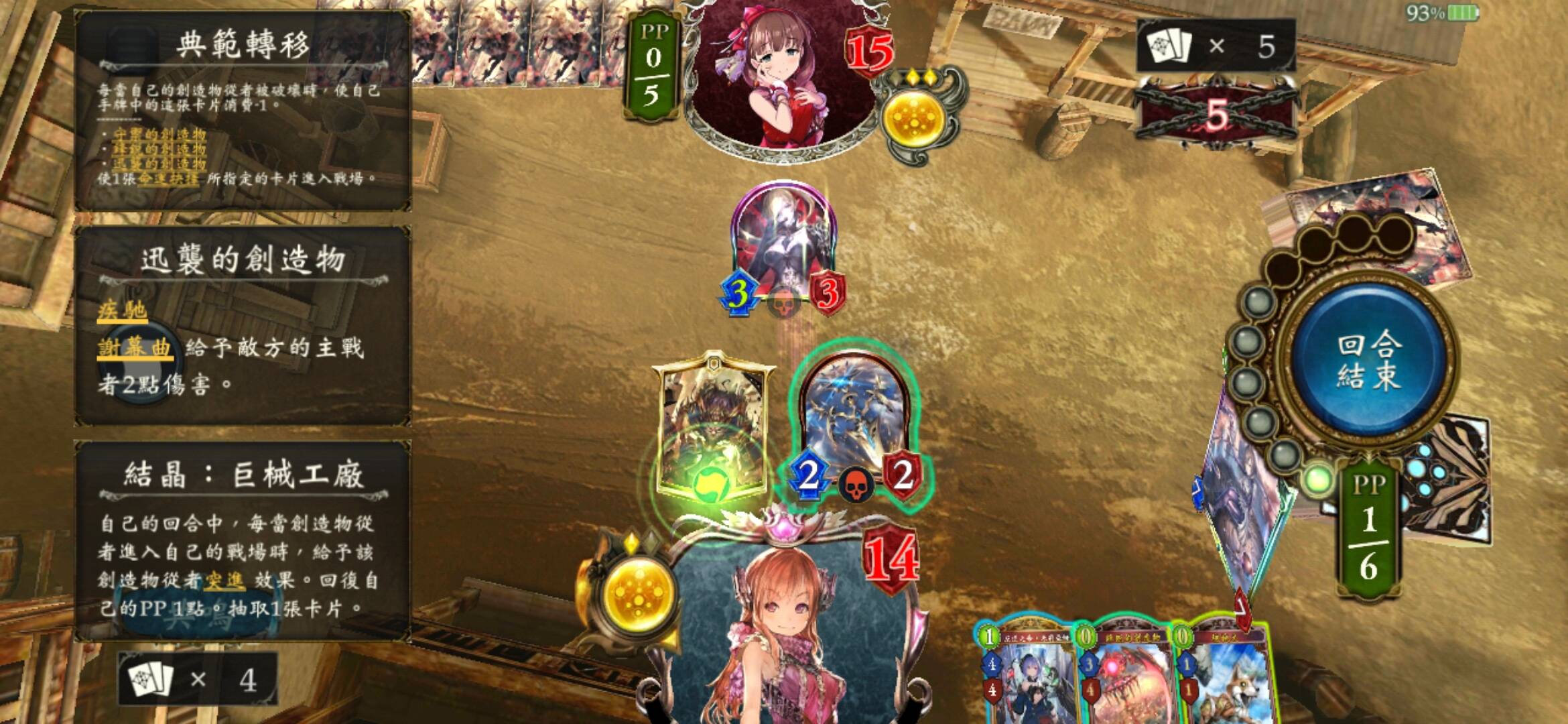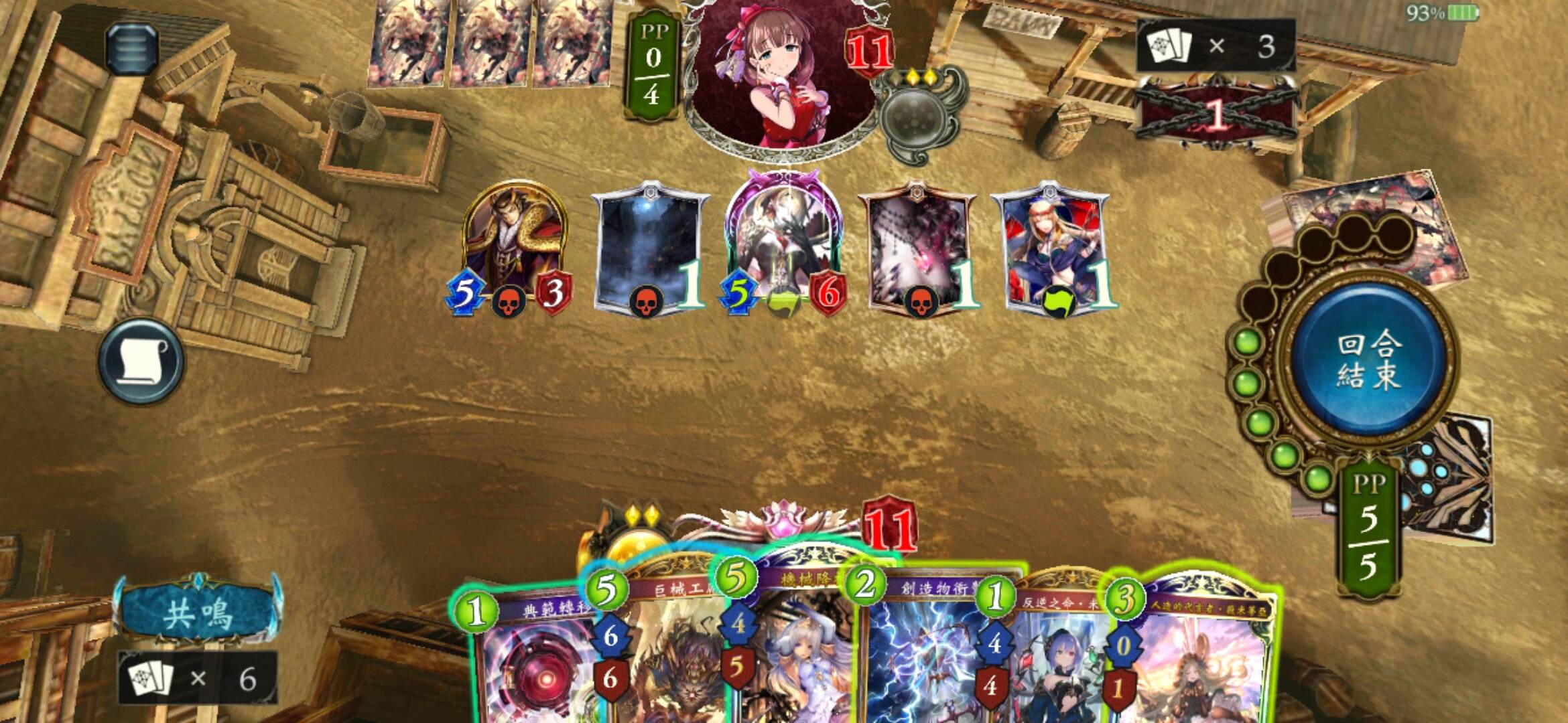 后手1c回合,出城主过,这里不开资源应该优先站场来为后面几回合抽到的水银buff做铺垫。